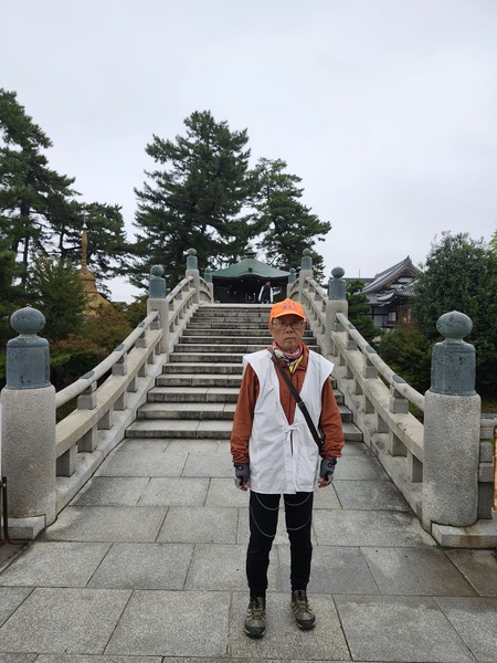 由第74番甲山寺前往善通寺.騎48縣道.也只有2.5公里.善通寺在善通寺市的市區.這是善通寺停車場.通往寺院的參道路橋.