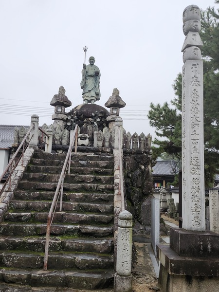 弘法大師雕像.為了紀念大師誕生1100週年.於1934年建立.這尊巨大的大師像位於石階頂端.俯瞰著院內.