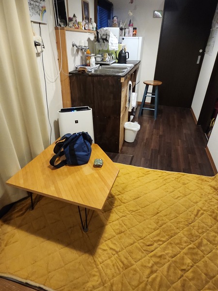 民宿狹窄.這是公共用餐及交誼廳.男女分開床位.各約10個床.及一間雅房.只有共用一間浴室及廁所.我們住唯一的一間雅房.也要7000日幣.比露營還糟.不推薦.