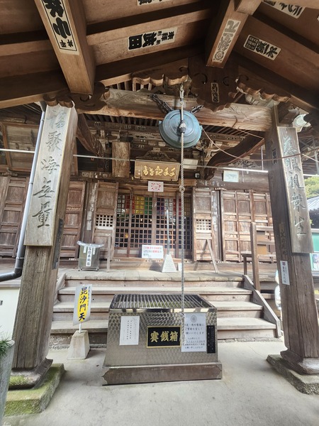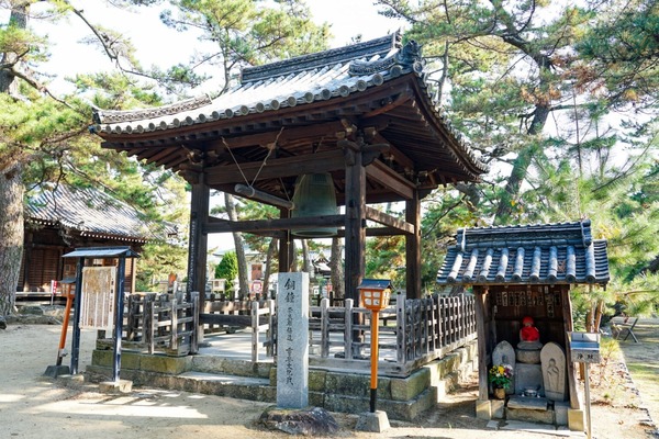 銅鐘.是寺院亮點.建造於奈良時代.是四國現存最古老的寺鐘.有一個神奇故事.在1609年.當時藩主生駒氏.曾經把它據為己有.運去高松城.出現了鐘聲不響.厄運連連的情況.臥病在床的藩主.每夜夢到大鐘發出[回家.回家]的聲音.後來只好把大鐘歸還寺院.回到寺院後.大鐘就恢復正常.這個一千三百多年大鐘.現在是政府指定[重要文化財].