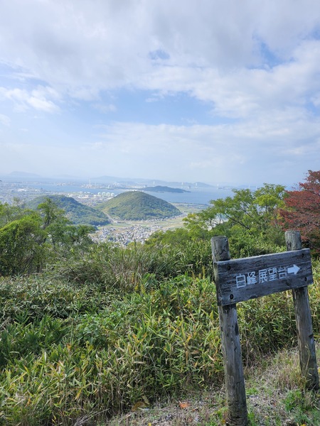 [五色台]是香川縣代表性觀光勝地.這片熔岩台地由五座山峰構成.分別是紅峰.黃峰.黑峰.青峰和白峰山.標高約400至500公尺.南北向的[五色台天空道路]上設有多個展望點.這裡是白峰展望台.