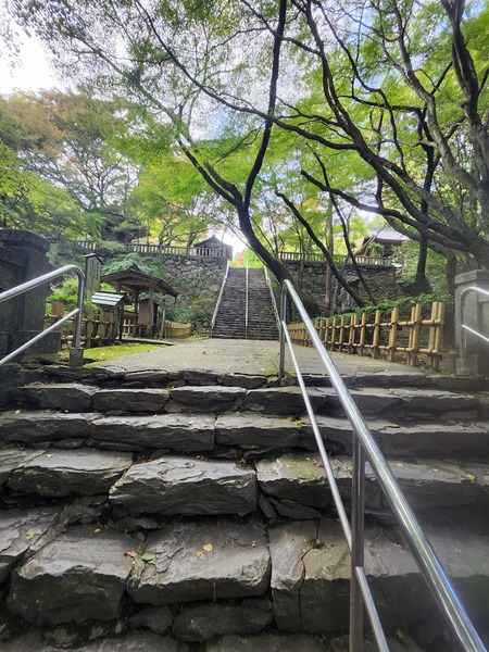 步行一段.在登上石階.這段通往寺院的參道.古老石階十分特別.也很罕見.
