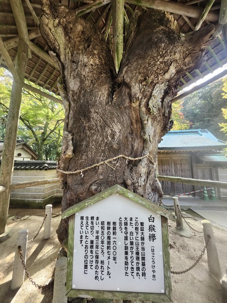 白猴櫸.遺跡說明.這棵櫸木樹齡約1600年.據傳開基時.有白猴現身守護.該樹於1975年枯死.1991年進行保存處理.砍下樹根並搭建屋頂.在原址展示.