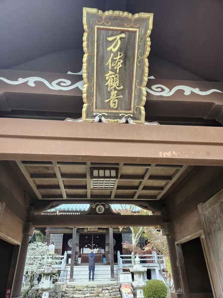 [萬體觀音]牌匾.在本堂前的凹形走廊內.排列著來自全國各地信徒捐獻.約3萬3千尊觀音小佛像.