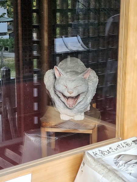 貓咪雕像.據報導寺院以三毛貓聞名.這隻張嘴大笑的貓咪.位於本堂.供參拜者觀賞.