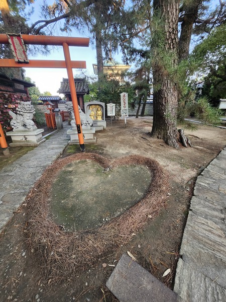 落下松針堆成心型.象徵著[心]或[幸福].適合遊客拍照.