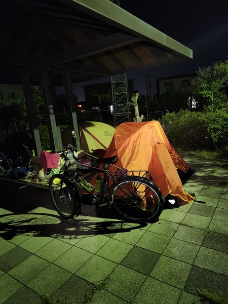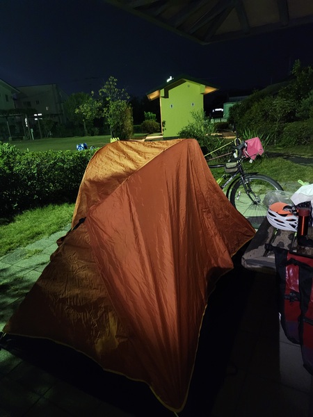 帳篷搭在涼亭下.鄉下住宅距離約有20米.不會干擾到.公園還有公廁.這裡很寧靜.真是完美的露營地.感謝大師!