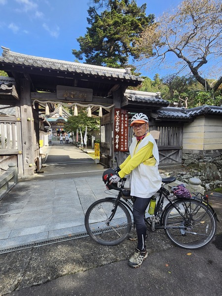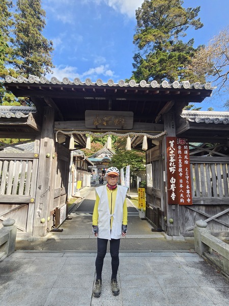 一般5點關閉納經所.在信徒都離開後才會關山門.而在.傍晚4點30分.國分寺就關山門.真離譜.我們被迫從圍籬樹離開寺院.走進田園.再繞回山門外.取單車.這時為4點40分.看到日本一位年青的遍路者.不得進入.我們還算幸運.能夠進入完成納經.
