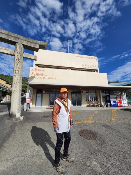 八栗纜車站.第85番八栗寺.位於五劍山八合目的位置.許多遍路朝聖者.會乘坐纜車登頂.我們將單車停放停車場.