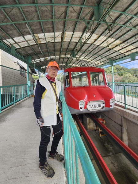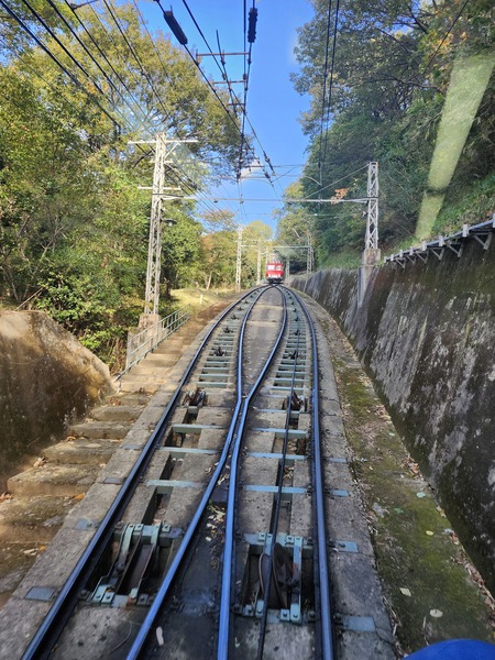 有軌纜車.搭乘紅色車上山.