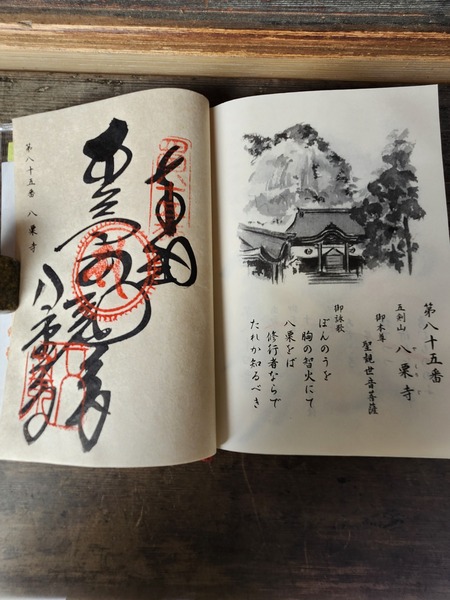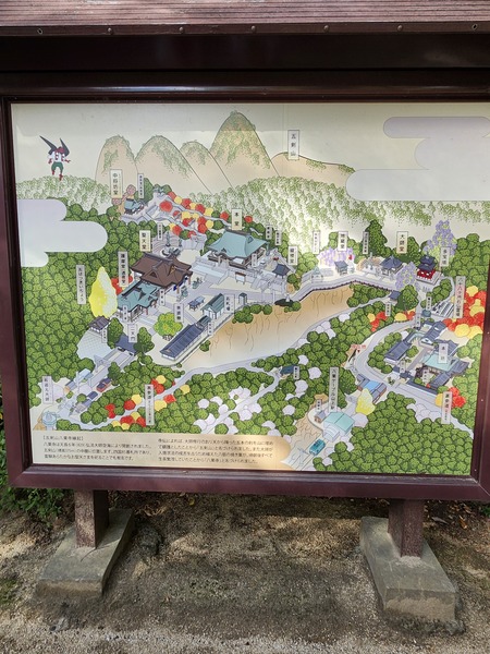 第85番八栗寺全圖.西元829年.空海大師登此山修習求聞持法時.五把劍從天而降.山神現身向大師說這座山是佛教聖地.於是大師將劍埋入山中.並雕刻大日如來雕像.將此山命名為[五劍山].