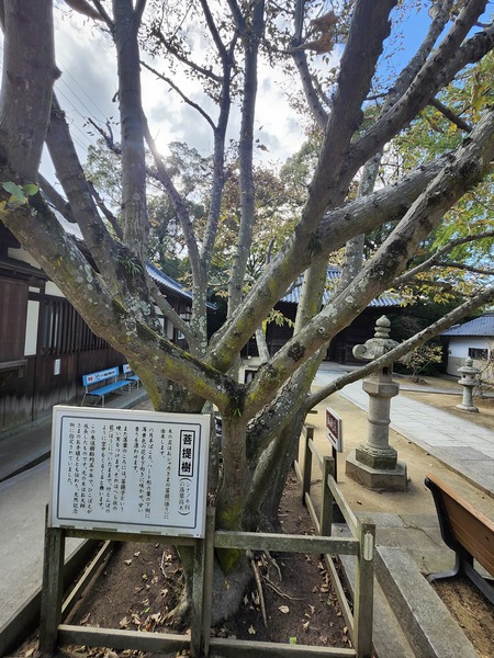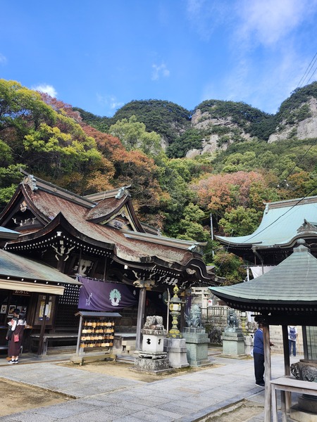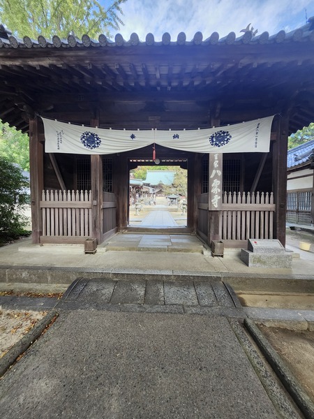 山門.寺院最初名字是[八國寺].空海大師在出國往唐朝學法前.他將八顆烤栗子埋在此處.在804年大師學成歸來.發現栗子都長出芽.便把原寺名[八國寺]更改為[八栗寺].
