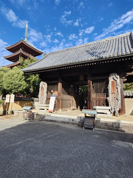山門.是寺院亮點.在門前町盡頭的山門.映入眼簾的是知名佛教雕刻師運慶的傑作[仁王像]和[巨型草鞋].山門是日本相當罕見的三脊結構建築.已被指定為國家重要文化財產.山門側邊是五重塔.