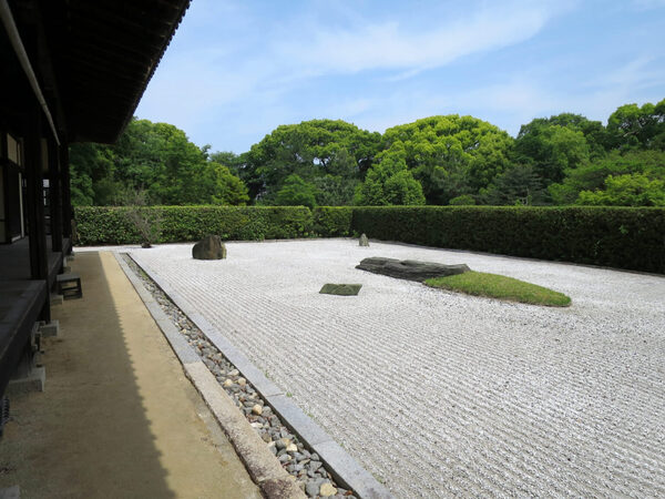 枯山水庭園.是寺院亮點.建於室町時代.為禪宗枯山水庭園的風格.這是當時一位寺院外籍女志工極力推薦的地方.