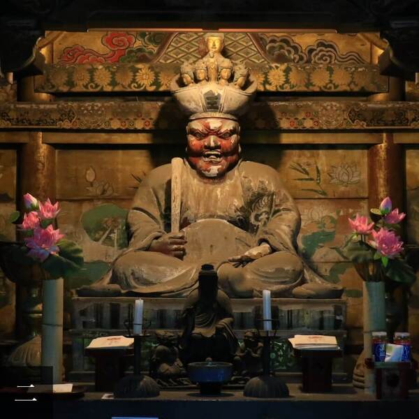 閻魔王像.是寺院亮點.根據志度寺的歷史記載.閻魔大王和本尊十一面觀世音同為一體.頭上戴著十一面佛面具.據說.閻魔王的臉可以顯得可怕.也可以顯得慈祥.這取決於參拜者當時的心情.