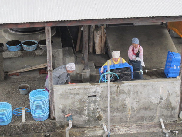 歐巴桑準備清洗海藻.