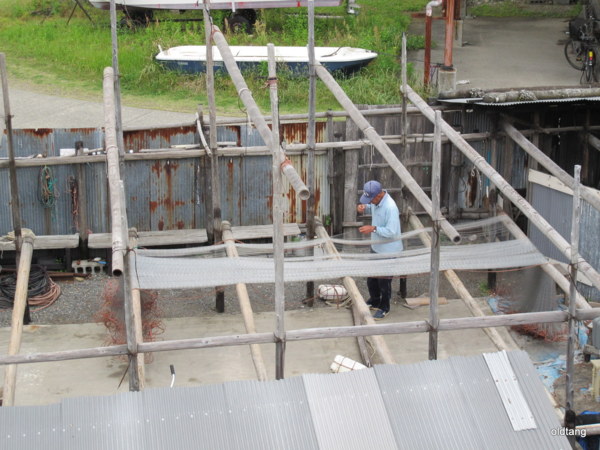 漁民正在補漁網.