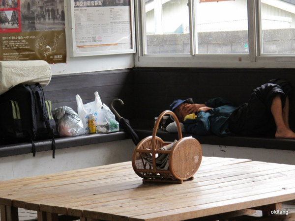 火車站內躺著一位遊民.