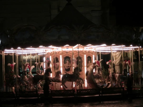 在晚上的廣場旋轉木馬看起來超浪漫的(連馬頭上都還有羽毛)