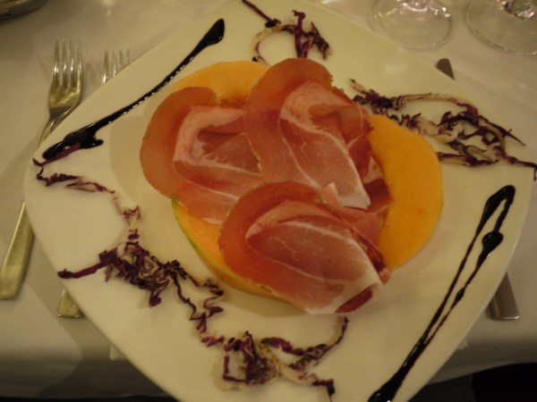 甜甜哈密瓜配煙燻火腿當前菜~非常搭配