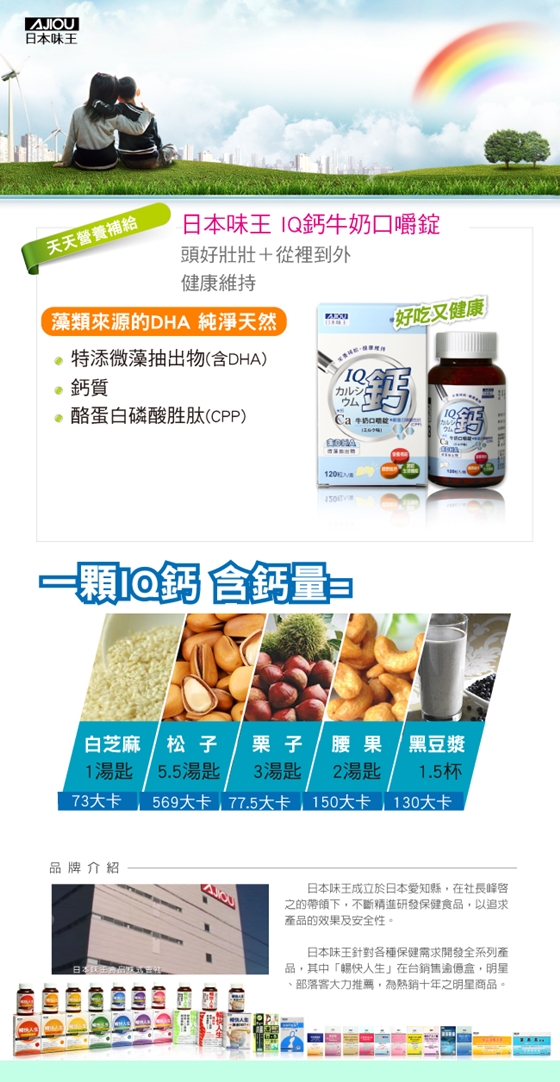 日本味王-IQ鈣牛奶口嚼錠數量有限,售完為止!限量是殘酷的,不要猶豫入手要快~包含更進一步圖文資訊的介紹!點擊圖片或文字可以進到更詳細購物推薦網站~還有去各大拍賣網站RUTEN露天、YAHOO拍賣收集商品資料!因為我自己也想要了解日本味王-IQ鈣牛奶口嚼錠,所以到處尋找資訊做功課.VIVIAN一向是個理性的消費者,能讓他讚賞的商品不多了! |