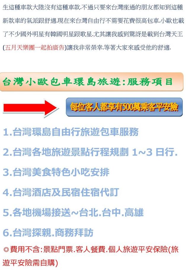 台灣小歐旅遊包車服務有 旅遊行程協助安排 介紹台灣非常有特色的民宿跟飯店 分享台灣好吃小吃跟夜市