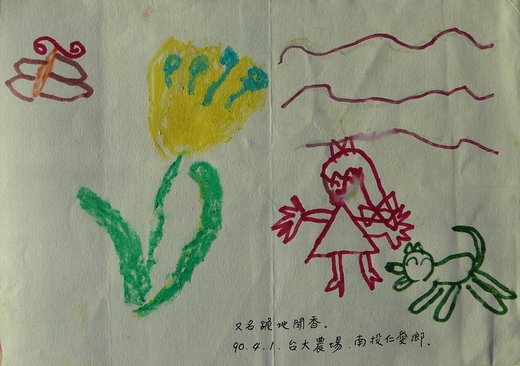 (這一株名為「小蒼蘭」的小花,是梅峰農場的特產。因為它又有「跪地聞香」的別稱,所以小甜甜特別畫了三道長長的曲線來代表它迷人的香氣。)