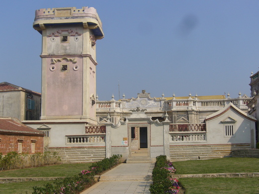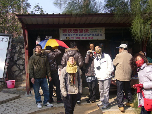 一早起床整理行囊準備寄放在樓下,因為還有好些行程要走呢!我跟老呂吃飽了,老師及學生们才下來吃早餐,老呂這時又去做公關了,跟幾位大姐在聊天,問著問著就將賣油條的地點給問了出來,於是老師就先帶我們去民族路買油條啦!到達時已有人在排隊了,而隔壁又是賣燒餅的,老呂趁等油條時就買了幾塊來大家分著吃,食尚玩家有介紹過還蠻好吃的,終於我前面剩一位小妹妹就到我了,但沒想到小妹妹家是賣廣東粥的,要買一紙箱的油條,算一算可能也有個五六十根吧!一條七元我一口氣也買了20條,大家一人一條外再帶個兩條回去給二姐吃,因為她就喜歡吃這口感,不像臺灣賣的是脆脆的。老師催著我們快出發了,第一個點就帶著我們到水頭村的金水國小,整個介紹了各式的建築及過海遠赴南洋賺錢的路線圖後,繞到學校後面參觀得月樓及躲海盜的槍樓,一旁還有好幾護民宿,我跟老呂也跑進去參觀了一下,也許可參考一下將澎湖的老房子也改為民宿哦!巷子裡有間賣紀念品的店大家買了風師爺的吊飾,我跟秀惠買了放名片的座子,趕快離開前往金門酒廠看一下,就繞到後面的文台古塔及虛江嘯臥碑,但是重點其實是要吃一旁的酒蛋啦!鄔老師請大家一人吃一顆,真好吃酒味不重,值得品嚐。