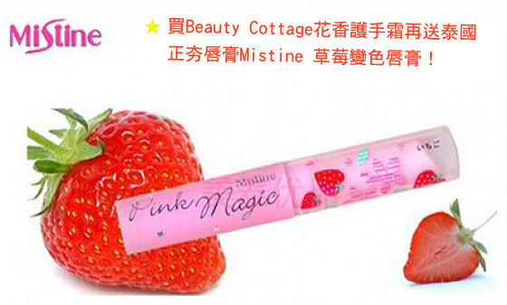 知名部落客花猴推薦的泰國人氣品牌! ![]() ![]() Beauty Cottage花香護手霜 去泰國旅遊時候不見得只能買曼谷包回來送禮,選擇貼心的小禮物,更能表現出你體貼的一面。知名部落客花猴也推薦的泰國知名護手霜品牌Beauty Cottage,兩種芳香氣息不過份濃郁刺鼻,送這樣的禮物比送包包還要貼心! ![]() ❤浪漫甜美花香 ![]() ❤皇室優雅花香 ![]() 除了雙手要香香以外,也要有張粉嘟嘟水嫩嫩的自然唇色,讓親愛的他想要一親芳澤。買一送一、買二送二,快號召姊妹們來開團,一次買好做為女性最重要的戰鬥妝品! ![]() ![]() 商品規格 泰國美妝品牌【Beauty Cottage】花香護手霜 款式可選:浪漫甜美花香/皇室優雅花香 商品規格:30ml 保存期限:3年 主要成分:天然花香、天然檸檬酸、橄榄油、木糖醇、蘆薈等… 商品產地:泰國 Mistine 草莓變色唇膏(贈) 容量:1.7g 產地:泰國 ※此為平行輸入正版貨品 |