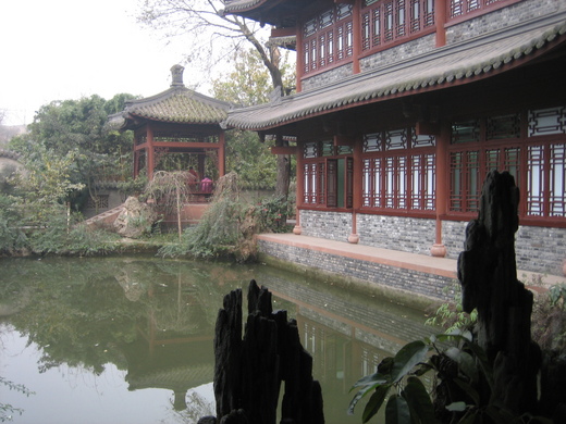 出了諸葛殿,往西穿過一片有小橋流水、亭臺池塘的幽靜園林,順著竹林深處一條紅墻夾道走到盡頭,就到了劉備的墓塋“惠陵”