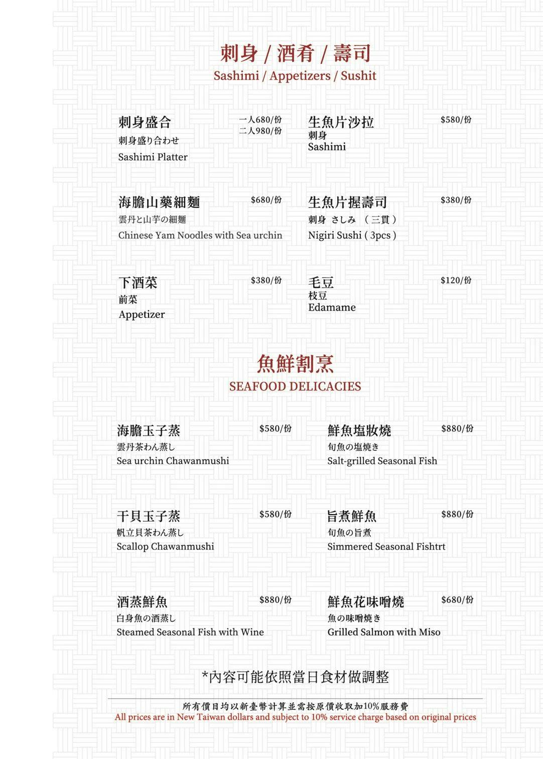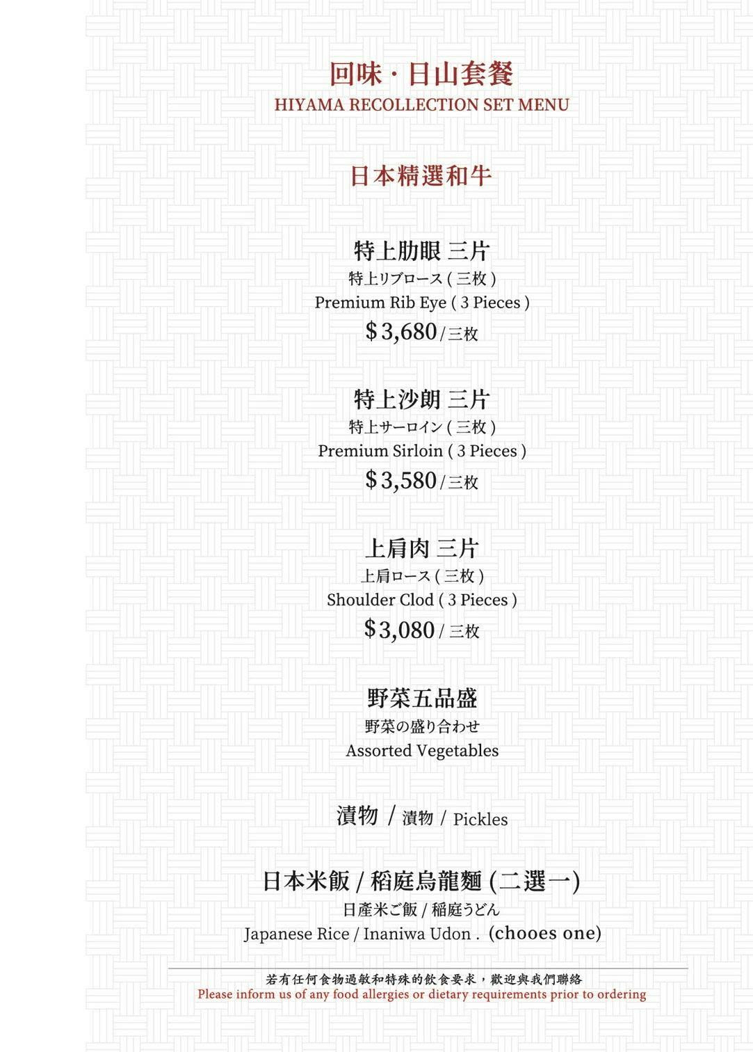 日山割烹壽喜燒台北店最新菜單