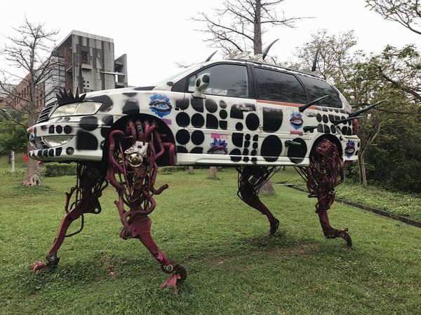午后拜訪台北藝術大學,沒有圍牆的校園,座落在關渡,依著山坡建, 沿坡而上,人行道的木棉樹花朵落滿地,蜿蜒的小徑,隨處可見的裝置藝術品打造出特殊的風格意象,有一份獨特的文藝韻味。