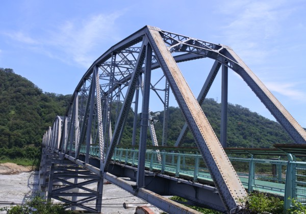 經過橫跨大甲溪上的花梁鋼橋,有 6 個拱型架架在橋墩上
