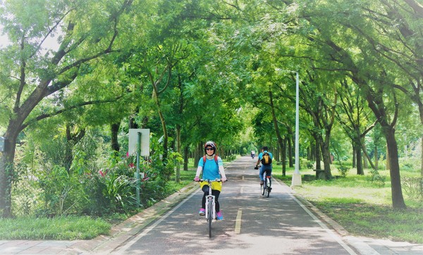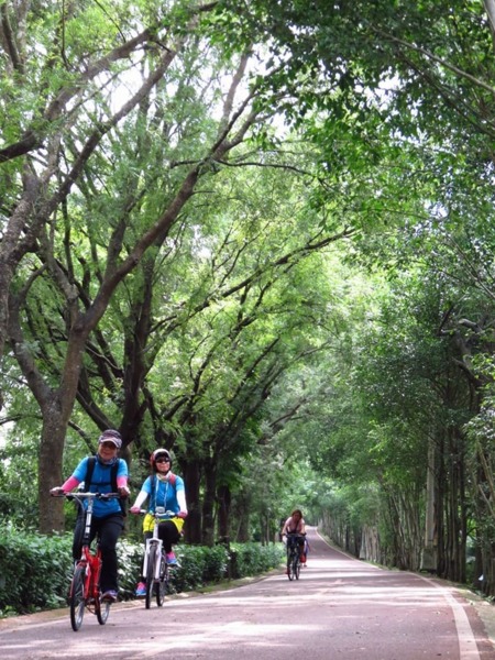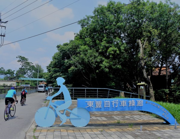 連接12公里東豐綠廊,利用廢鐵道改建而成的自行車專用道,雖然豔陽高照,兩側綠樹遮蔭,非常舒爽,而且又是緩坡,一個接一個不同風景,在眼前掠過,不是車窗外的浮光掠影,是用雙腳踩踏過的景點,沿途的自然風景入眼簾,串起另一段時間的印記,心裡刻劃美麗的足跡!!