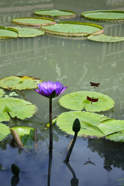 池雖不大,有幾姝含苞及盛放的睡蓮,更有翩翩飛舞的蜻蜓、蝶徜徉花朵和荷葉間點綴景色。--20170613-----