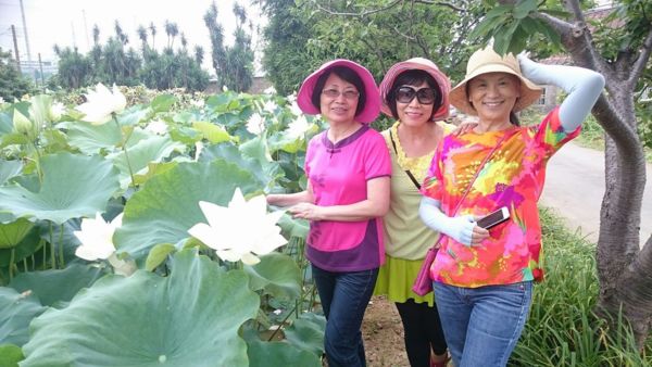 迴繞小巷進去,盡是淳樸的民屋,當地主人正忙著從蓮田採收下來,剝蓮蓬取蓮子,一方為我們介紹,此荷花品種名為白蓮三號,是88年台南六甲鄕十大傑出農民林森津博士成功研發的,蓮子產量比一般品種多了三到五倍,花期更長,品質更好,味道更加甜美,蓮藕又長又大,此品種抗酸性高,酸雨侵襲的時候,不會發生倒苞的現象。