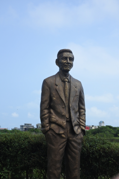 沿著田梗小路行走,農田之中有一處立有一座銅像,正面有「護溪先鋒」題字,陳天送先生是生態保育協會創會會長,提出「山滿林 溪滿魚」之願,實在是發人深省的一段話。------ 20170629 -----