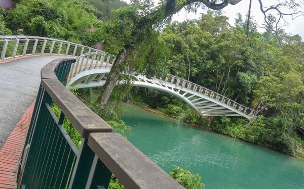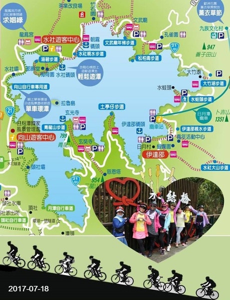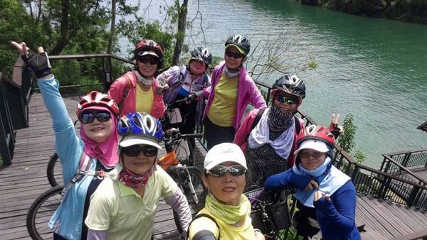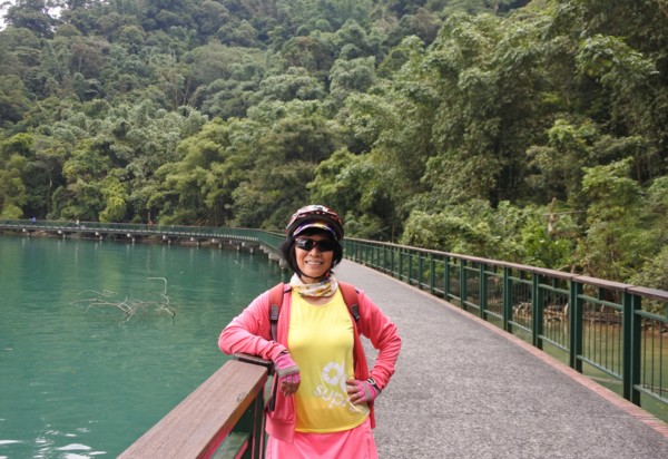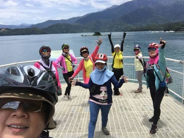 我們是以邊騎邊玩邊哈拉的速度前進!慕名進入最新景點『向山眺望台 ( 天空步道 )』, 長15公尺的懸臂, 由岸邊漸漸傾斜伸向『日月潭 』270度的湖面景觀,都能盡收眼底。