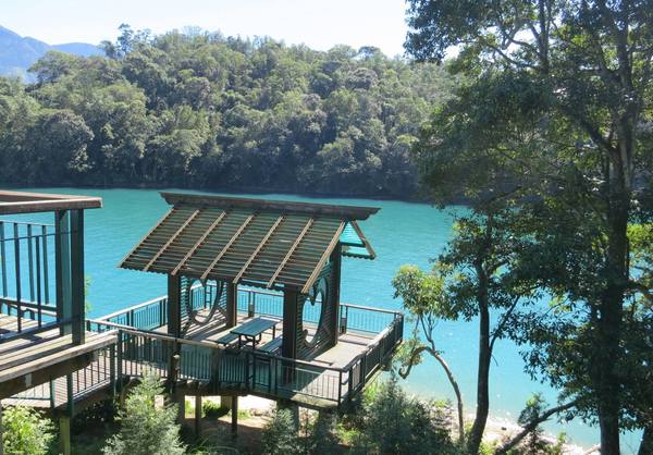 繼續踩踏前往「伊達邵碼頭」市集,商店街上有伊達邵族風味小吃及各式在地美食,在此享用午餐。飯後一行人抖擻精神,不乘騎環潭公路,輕騎湖濱步道連接到日月潭纜車站前進「水蛙頭步道」就是要去看九隻青蛙ㄚ~~途經孟宗竹林、原生林木