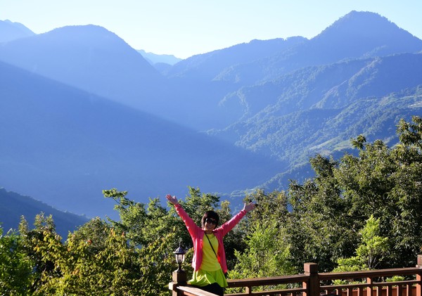 6:00早起遠眺,合歡山、奇萊山、山巒景色層層疊嶂,早已被燦爛太陽照得明亮萬分!山莊的主人,為我們準備豐盛美味可口的早餐!!
