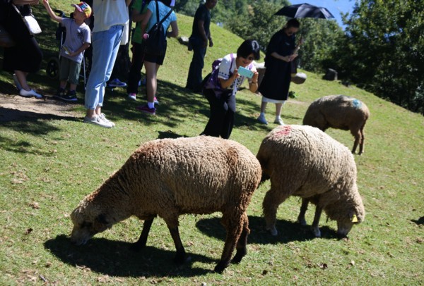 告別山莊主人,前往清境農場找綿羊寶貝,放眼望去的景象,綠油油的遼闊草地,隨處可見羊群,靜靜的在草原上遊走或低頭吃草和遠處湛藍的天空綿延的山景一幅美麗風光,心情也跟著開闊爽朗!! 漫步在步道上,可攬群山美景,俯瞰翠綠草原與可愛羊群,在山坡草原上追逐著綿羊的身影,只盼牠抬頭,看看鏡頭與牠合照!! 耀眼的太陽照射需要撐傘遮陽,高山的氣候不會讓人躁熱,空氣也很清新,享受那份悠閒!!