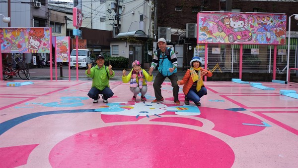 雨天只有勇將有帶雨鞋行走開心的踩雨水,行走通天閣巷弄,發現一處超夢幻浪漫的粉紅色「Hello Kitty停車場」 當然要拍照留念。