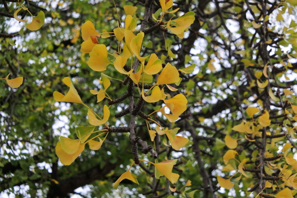 大阪城公園 ,有一顆金黃色茂盛銀杏樹非常美,地上滿滿銀杏落葉,搭配古色古香的城堡很有味道。