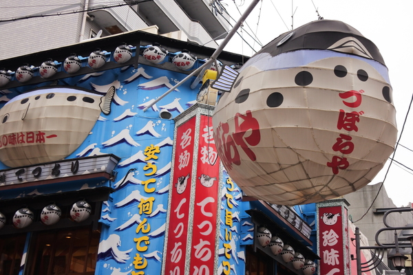逛逛新世界商店街,走在掛滿誇張店家招牌的老舊商店街上,可以感受到濃濃的復古風和懷舊情! 商店街各式各樣造型的代表大阪福神『Billiken』很可愛哦!