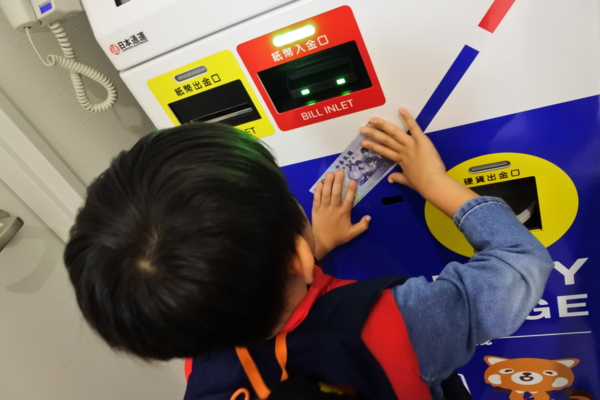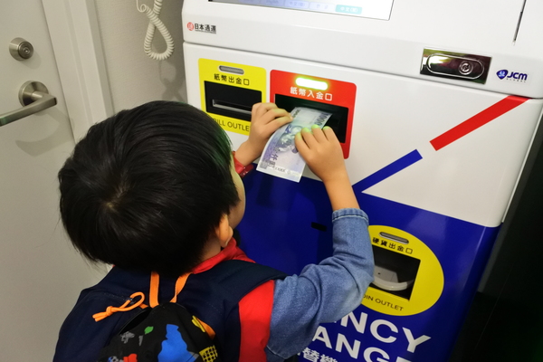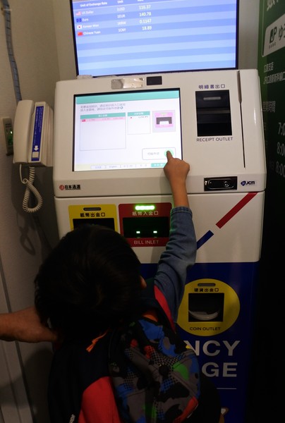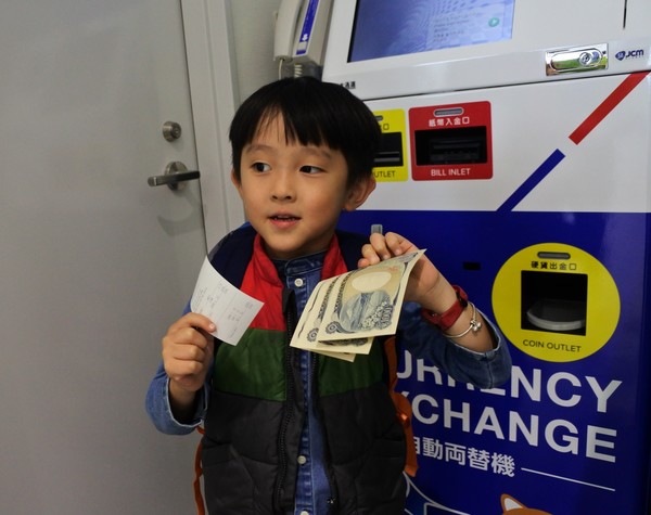 帶去20萬日幣用完,廣島駅內有是外幣兌換機,依照介面指示操作,一次只能台幣1000元兌換日幣。 勇將教一次就會,負責換外幣也是工作之一 !!