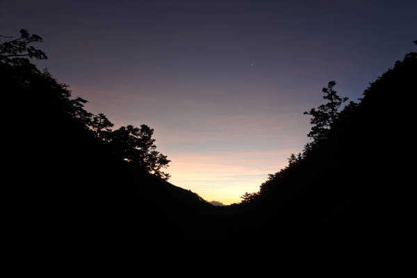 夜宿避難山屋(3350m高山症反應,覺得身體不適,有些微頭痛,沒食慾,想吐,晚飯沒吃)6:00早早就寢休息! 10:30悠悠甦醒,需要上洗手間,帶者頭燈走出木屋,一陣寒風凜冽,哇!!皎潔月色天空滿天星斗!!漆黑樹叢裡有閃亮的黑眼珠,是水鹿耶 !!近距離相望,最難忘的驚喜了!