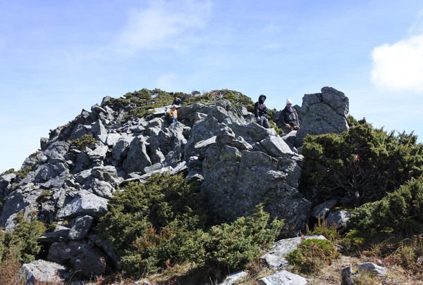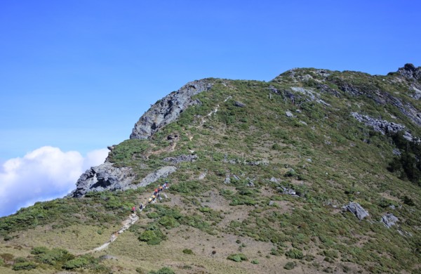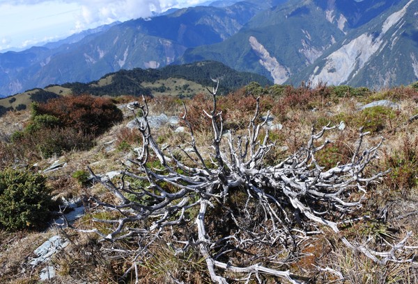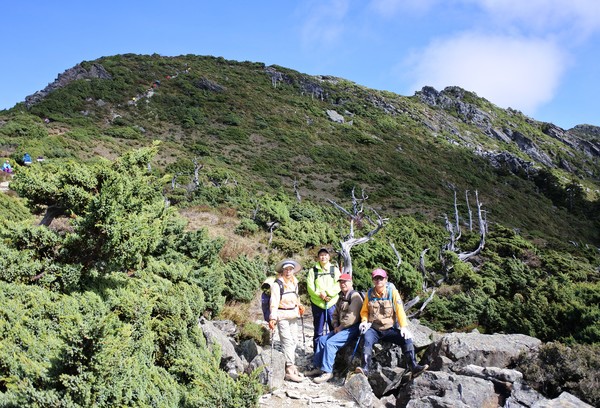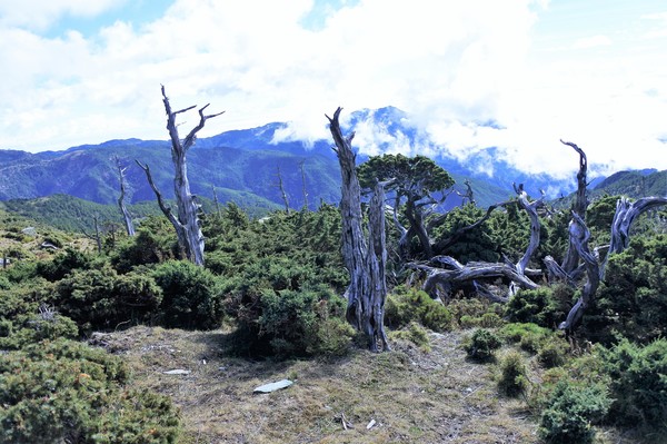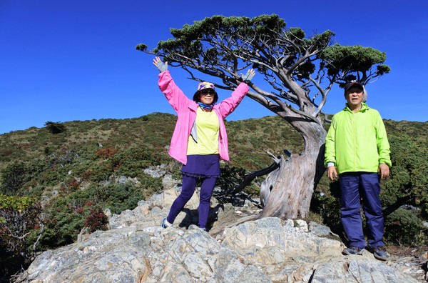 終於到了稜線終於可以稍稍喘口氣,再往前走一小段,就可以看到一棵樹形優美的向陽名樹玉山圓柏。