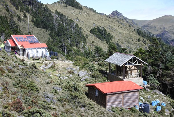 從向陽山登山口往嘉明湖山屋,先是緩坡向下,再經一段大石頭陡下後,就可看到嘉明湖山屋。