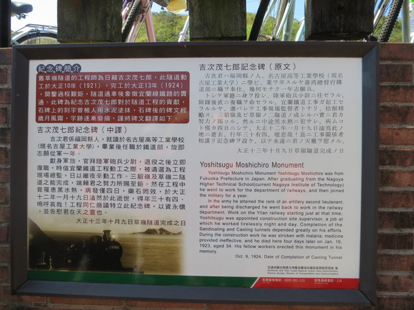 沿著指標鄉間產業道路,前往➟➠➡「舊草嶺隧道」前,有一處吉次茂七郎紀念碑,若非有意,很難注意到這不起眼的碑石。(我錯過2次呢)