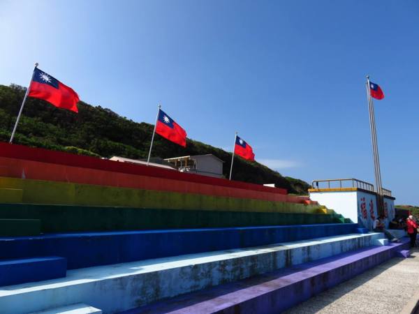 ↖色彩多麼鮮艷美麗的看台、國旗在飄揚啊!! 這是哪裡呢?這是台灣最東、靠海的小學 - 福連國小, 也就是新聞報導必須要會潛水,才能畢業的學校